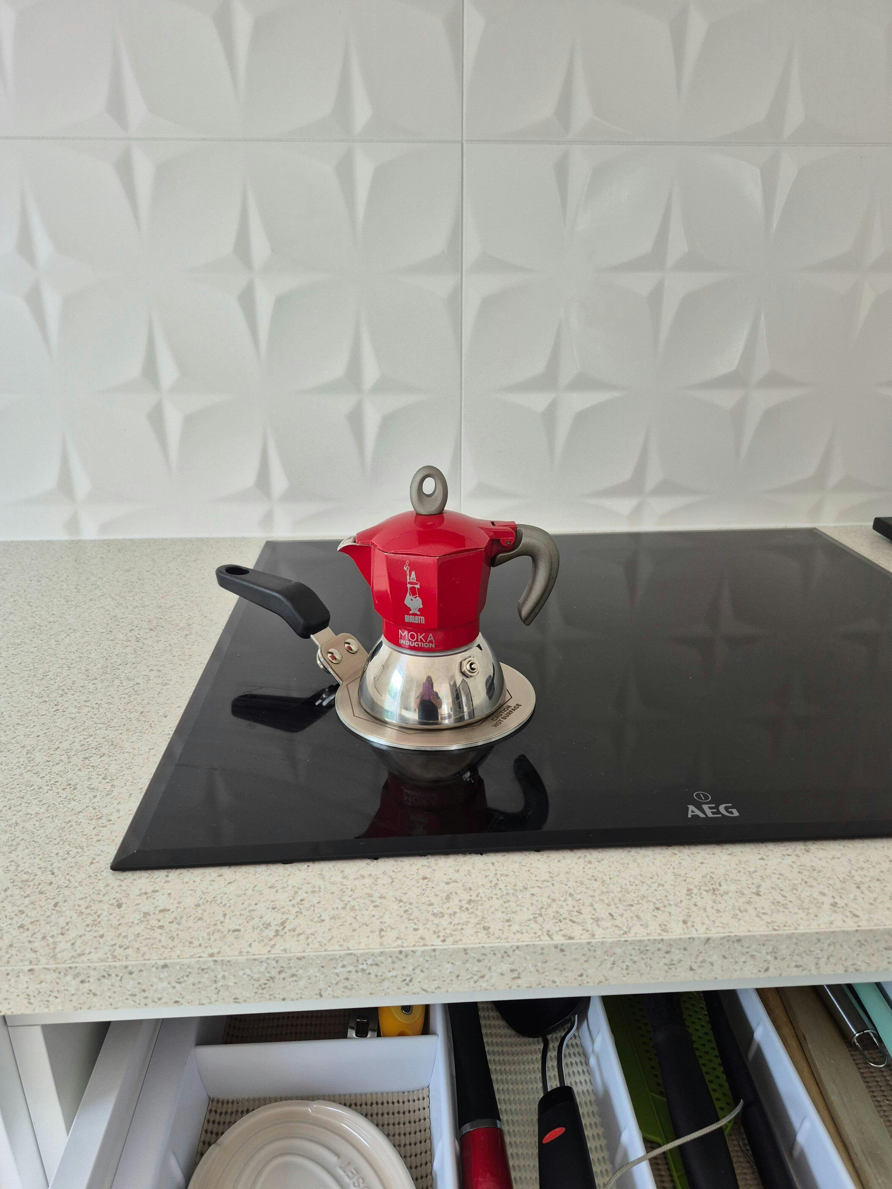 When the coffee is ready, turn off the induction hob and remove the coffee maker from the plate.