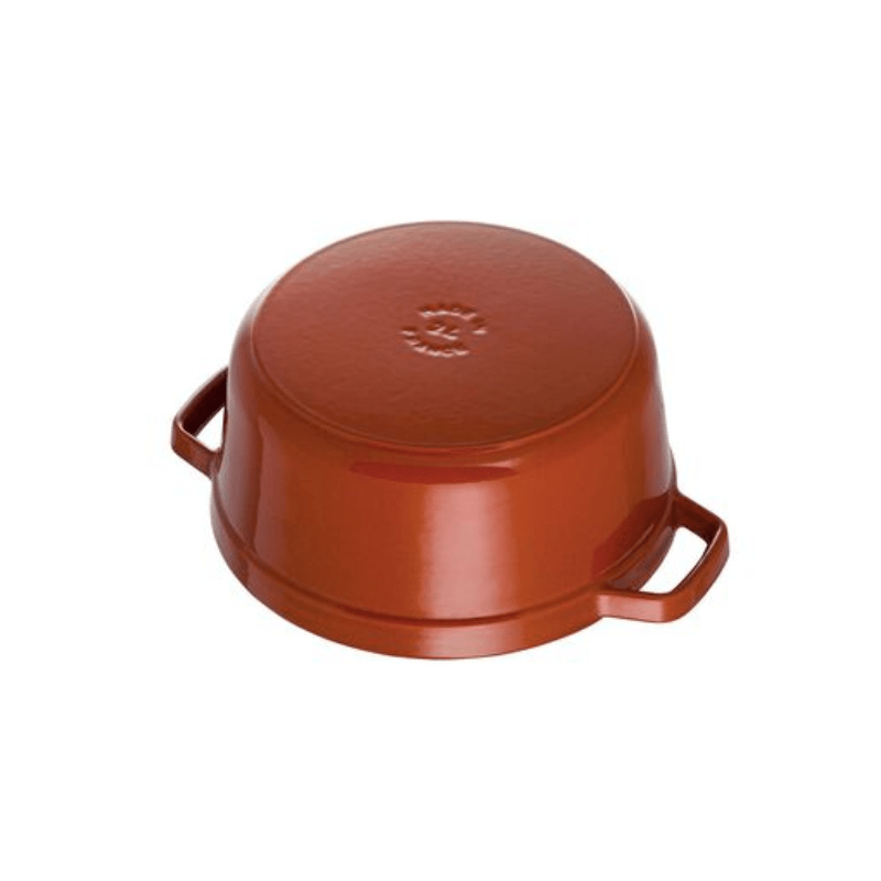 The tight-fitting lid with the STAUB aroma rain structure preserves moisture and aroma. The black matte enamel on the inside improves the cooking qualities and makes the Cocotte easy to clean and use, while the pastel green Sage colour on the outside adds a fresh touch to the table when the Cocotte is used for serving, keeping the food hot for a long time.