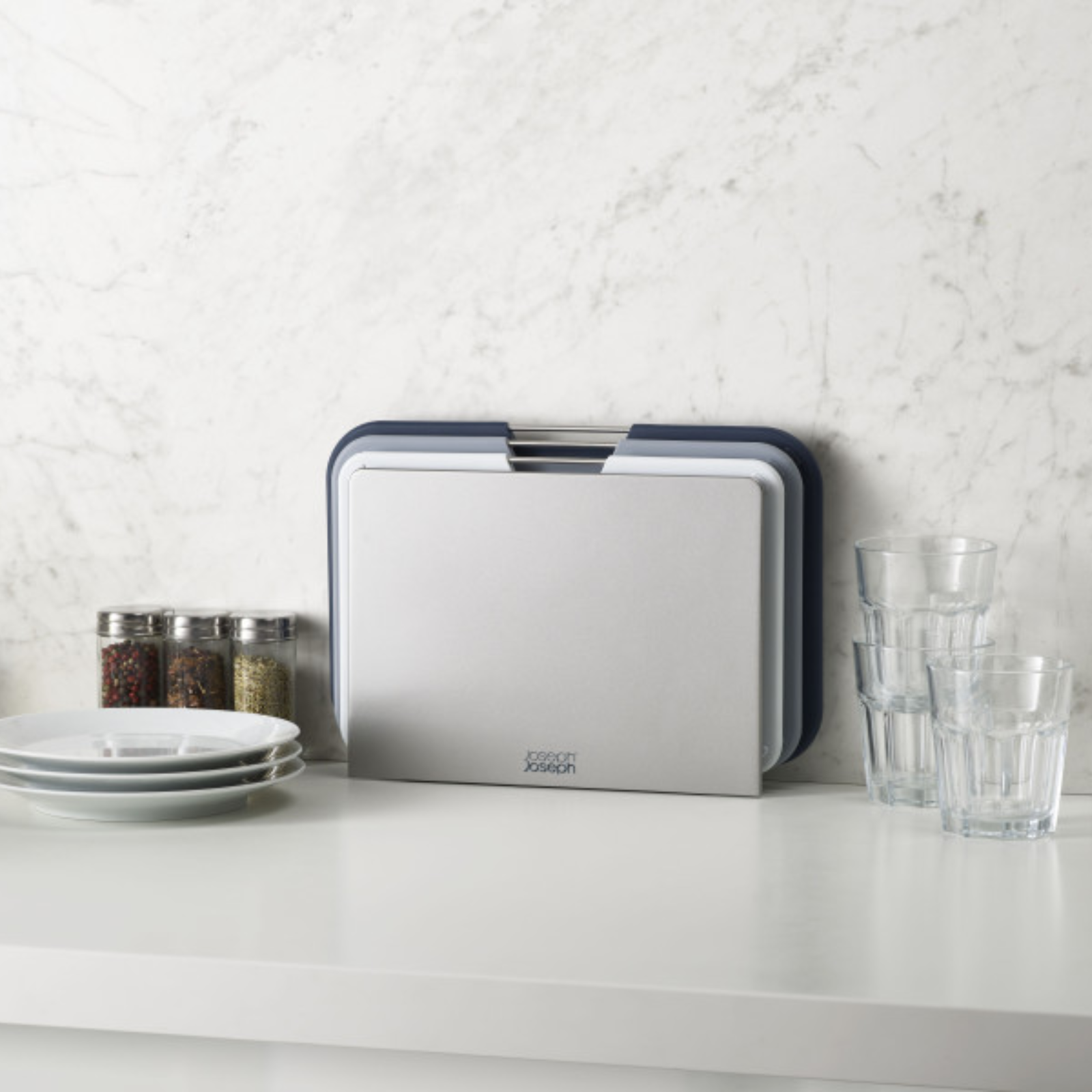 These sleek 3-piece chopping board sets come complete with their own storage stand that holds the boards apart for fast drying.