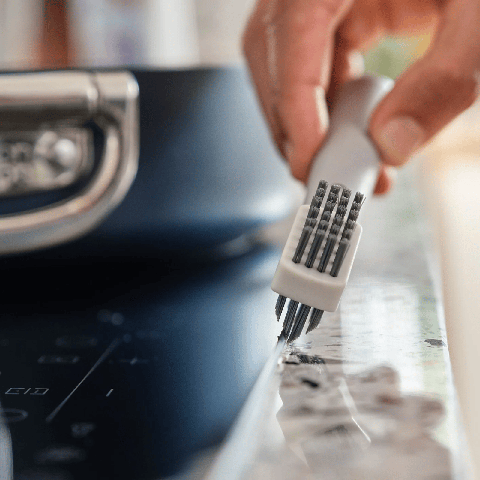 This compact brush has flat bristles for surfaces, V-shaped bristles for grout, and a built-in scraper for limescale. Perfect for detailed cleaning in tight spaces and around fixtures.