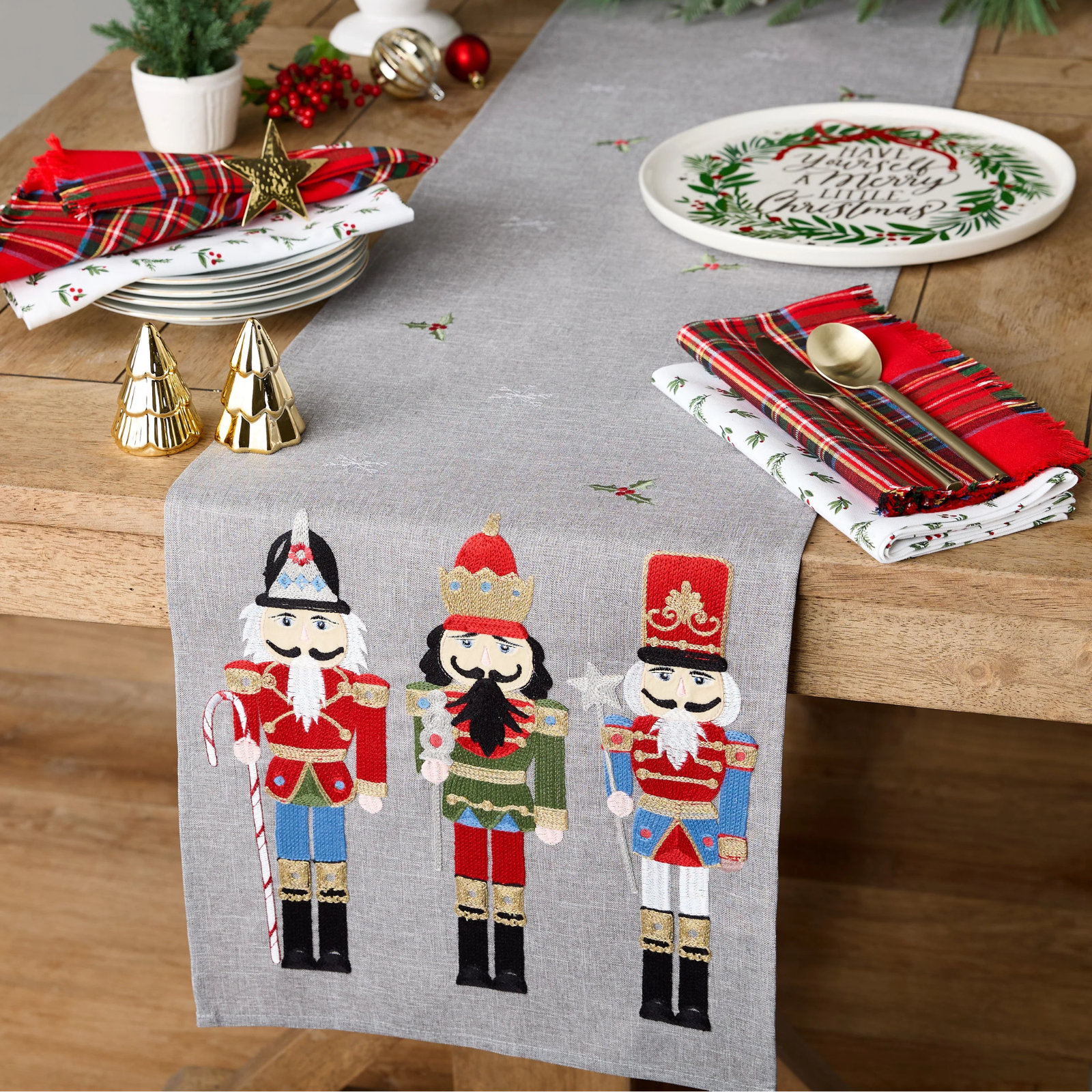 Bring classic holiday charm to your table with the Design Imports Holiday Nutcracker Embroidered Table Runner. Measuring 14x70 inches, this festive runner features detailed embroidery of traditional nutcracker figures set against a rich, seasonal backdrop. Perfect for dining tables, buffets, or entryway consoles, it adds a refined decorative touch that instantly elevates your holiday décor. Whether layered over a tablecloth or displayed on its own, it sets the stage for a warm and welcoming celebration.