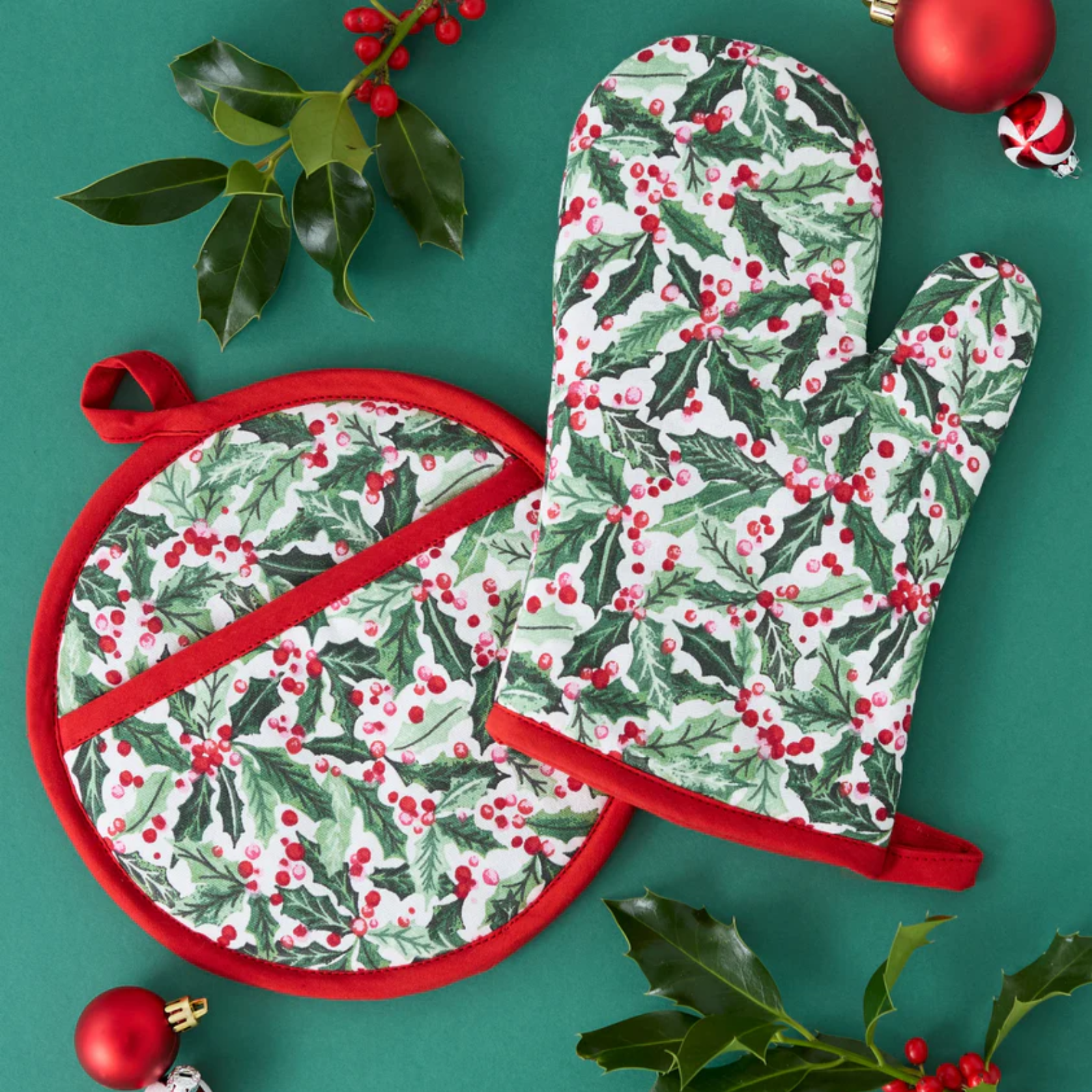 Bring a festive flourish to your holiday baking with the Design Imports Holly Jolly Printed Oven Mitt. This seasonal mitt adds a decorative touch to your kitchen while providing dependable protection. Lined with heat-resistant sheeting, this mitt helps safeguard your hands from hot pans and dishes—perfect for everything from cookie trays to holiday roasts. Whether you're hosting, gifting, or simply adding cheer to everyday cooking, this mitt blends holiday charm with practical use.