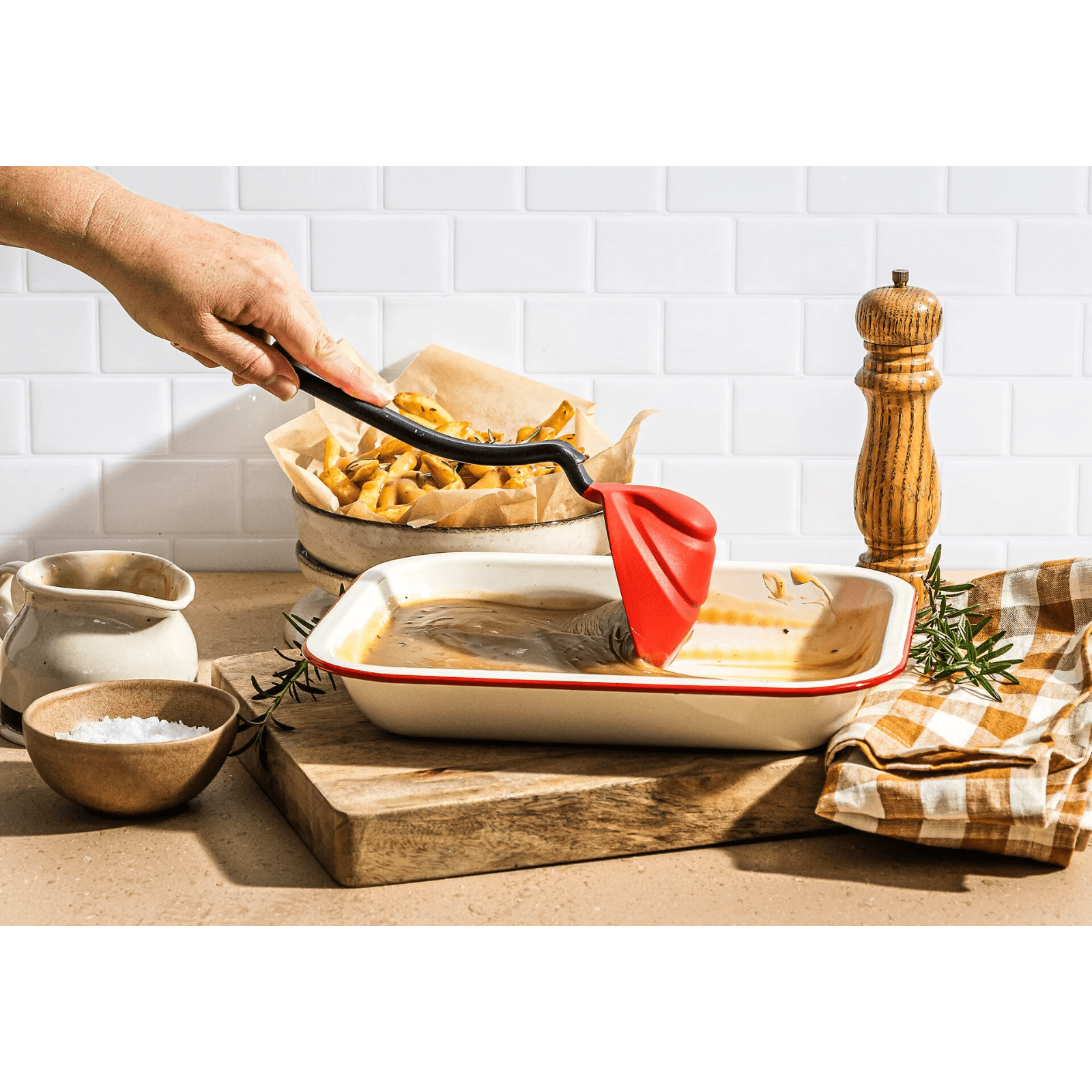 Flexible silicone scraping edge gets every last drop from your pan or pot, is safe to use on non-stick cookware and is heat resistant to 260°C / 500°F.