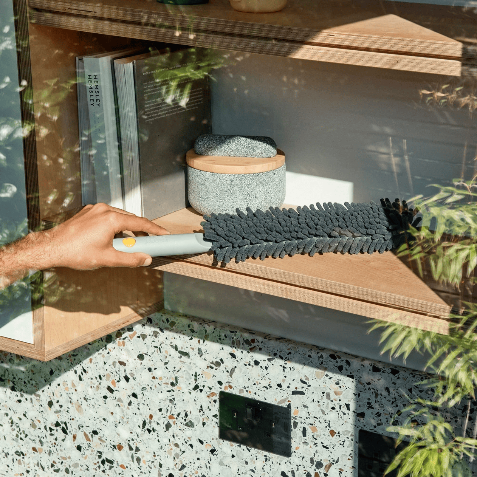 This dual-style duster has a fine microfibre side for flat surfaces and a noodle fabric side for uneven areas. Comes with a dust-removal tool and a storage sheath for easy maintenance and safekeeping.