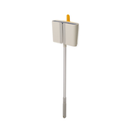 This broom features feathered bristles and a telescopic handle, stored in a Dust-shield™ holder that fully encloses the head to keep storage areas cleaner.