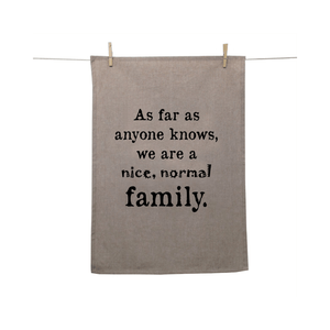 Karen Design Tea Towel Natural 'As far as anyone knows, we are a nice normal family'