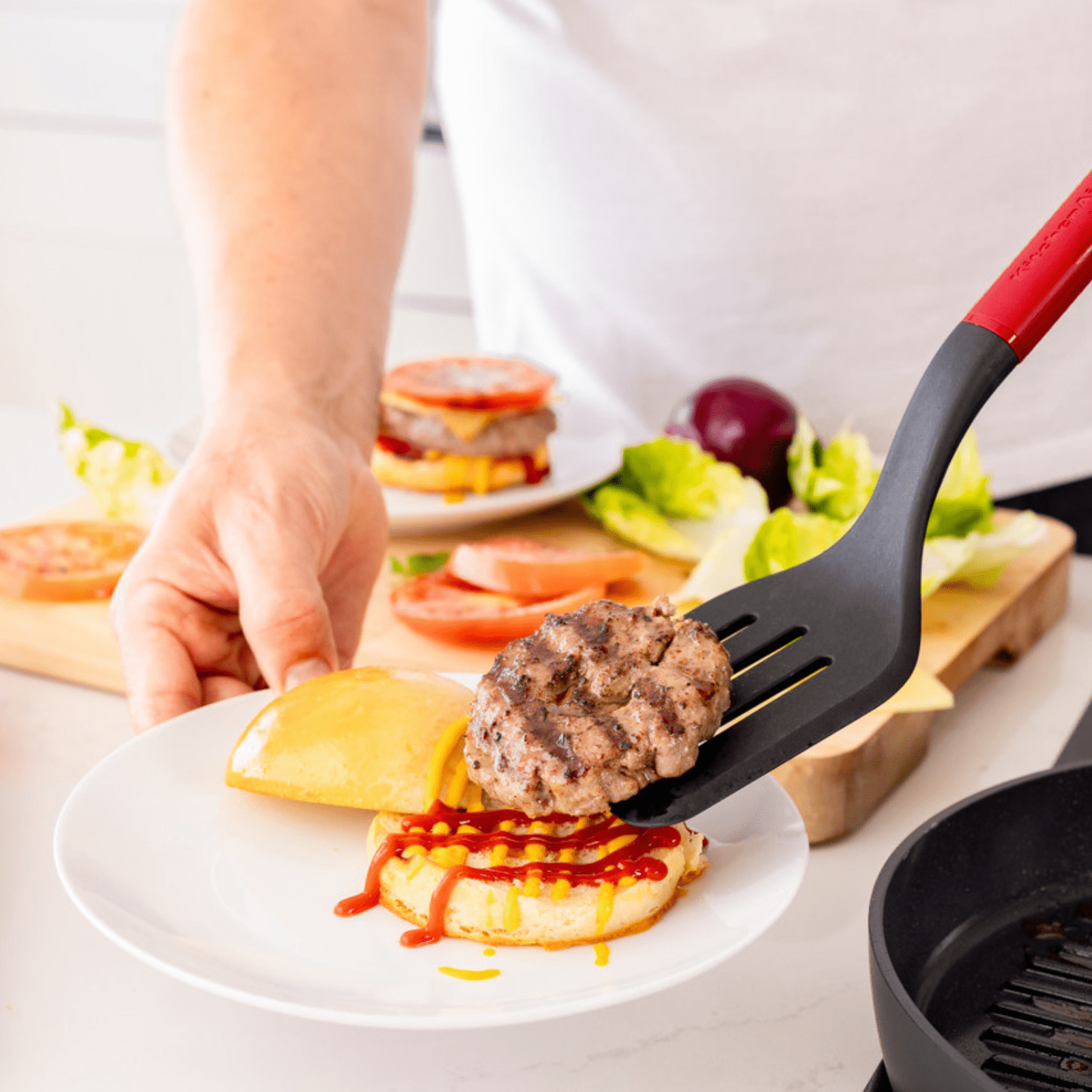 Elevate your everyday cooking with the KitchenAid Slotted Turner, a durable, stylish 34cm kitchen utensil designed for effortless flipping and serving. Featuring an oversized slotted head, it's perfect for draining grease from eggs, pancakes, burgers, and more. Made from heat-resistant nylon (up to 232°C/450°F), it's safe for all non-stick cookware. The ergonomic empire red ABS handle offers comfort, balance, and a premium grip. The handle also features a debossed logo and a handy hanging loop, perfect for showcasing your kitchen utensils. Built for daily use with high-quality materials, it's also dishwasher safe for easy clean-up, making it a must-have kitchen essential.