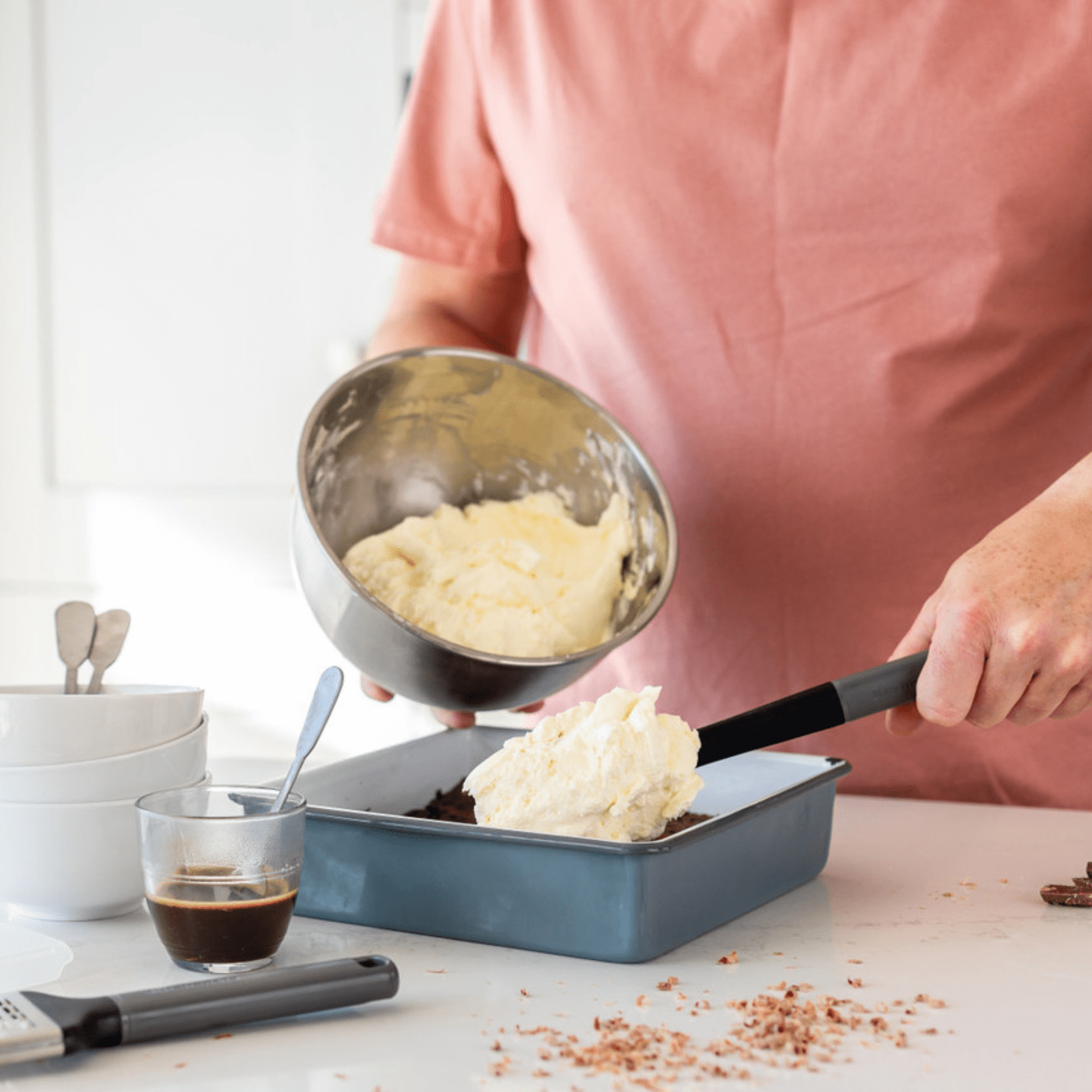 Upgrade your cooking with the KitchenAid Spoon Spatula, a durable and stylish tool designed for everyday tasks. Measuring 30cm with a smooth charcoal grey handle, it features a sloped silicone head perfect for sautéing, folding, stirring, and scooping. The heat-resistant silicone head withstands up to 260°C (500°F) and is safe for all cookware, including non-stick. The ergonomic handle is weighted for comfort, balance, and control, with a debossed logo and hanging loop for convenience. Built from high-quality materials, this sturdy spatula is dishwasher safe and made to last. A must-have for any kitchen.