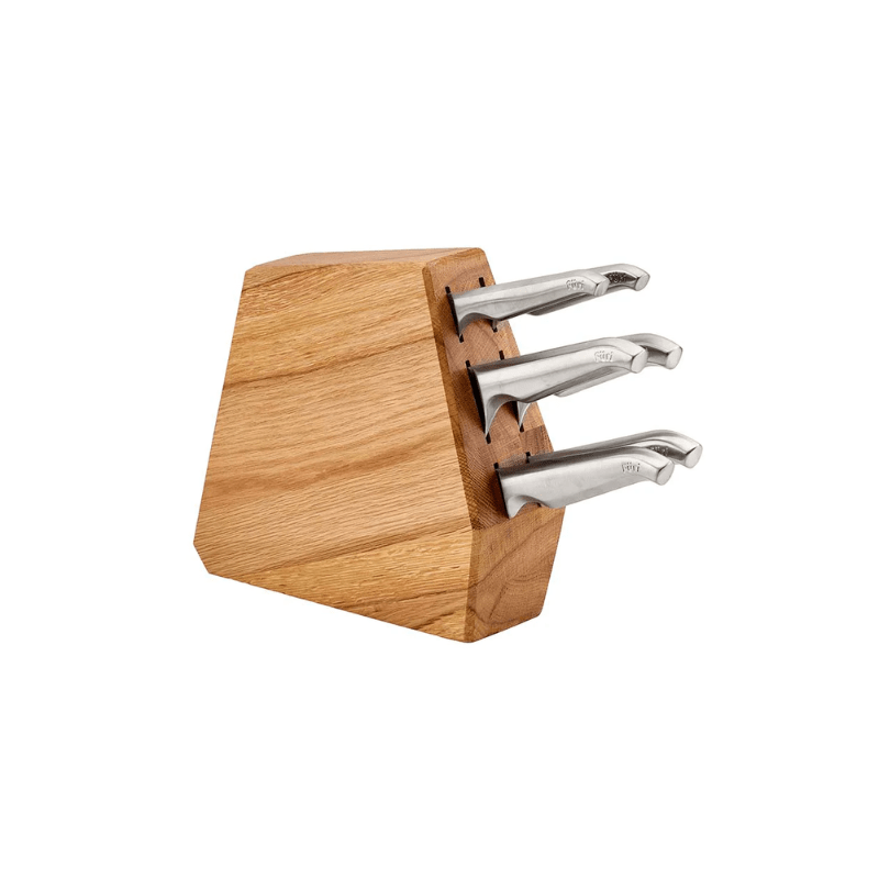 Designed to suit your style. The Furi Duo-Angled block is designed to sit in two positions that easily allow your Furi knives to be stored for easy access. The stunning white oak block that holds six Furi knives, will suit any kitchen design.