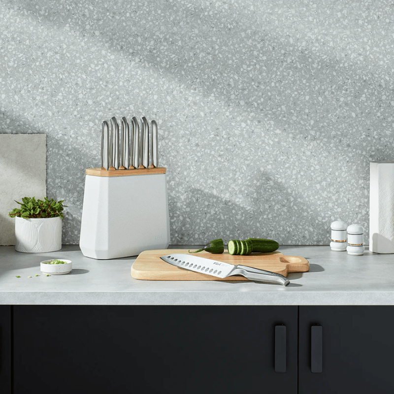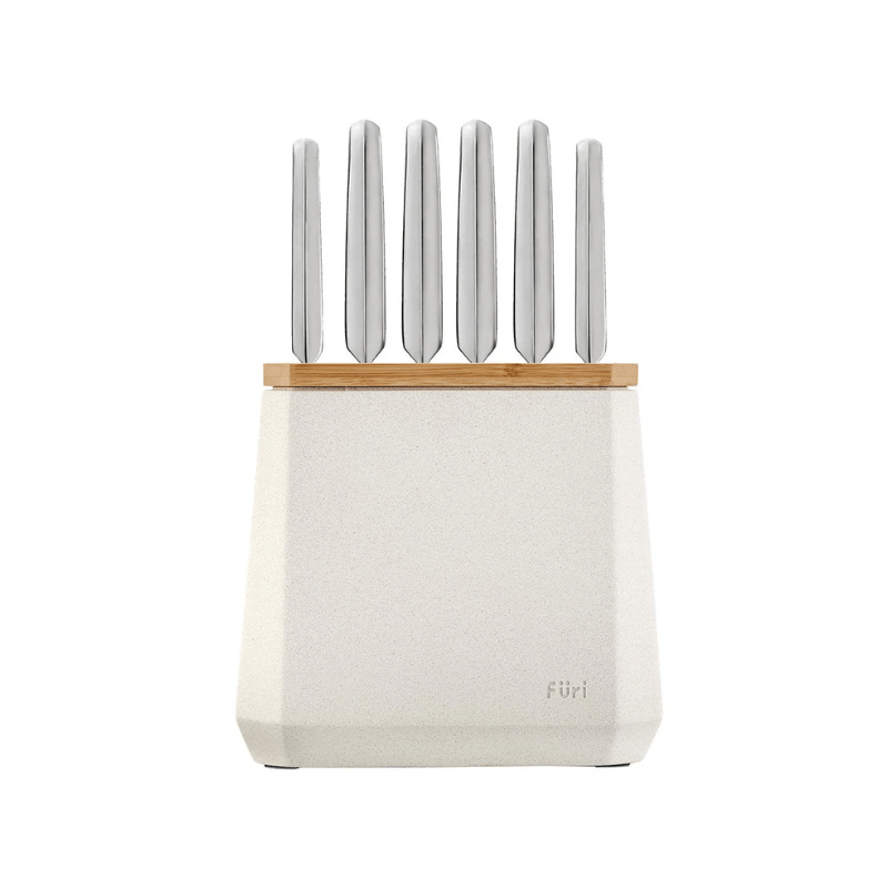 The Furi Stone knife block has been artfully crafted to complement wooden and stone kitchen finishes and to be the centrepiece of your kitchen. Thoughtfully designed to securely store your knives and keep them in pristine condition. Universal slots allow you to organise the knives in the positions that suit you.