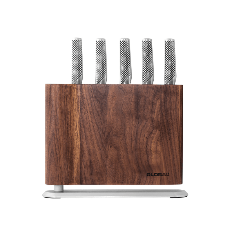 With the GLOBAL® UKU Cutlery Set in your kitchen, you're assured of having the right knife at hand to fulfil your grandest culinary ambitions. Each knife has been specifically chosen for its practicality and versatility and all pieces come neatly housed in a stunning walnut wood storage block. Also available in maple.