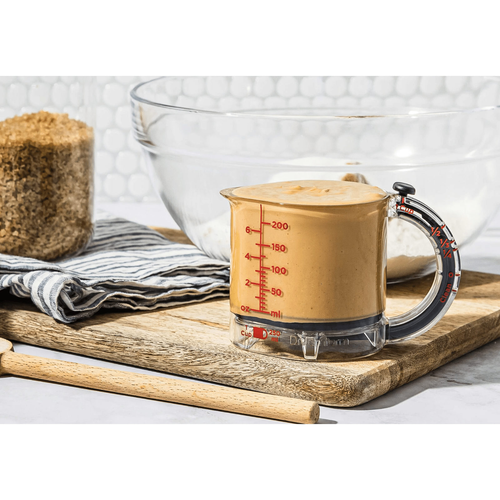 Upcup is a 4-in-1 adjustable measuring cup that scrapes itself clean for wet, dry, and sticky ingredients.