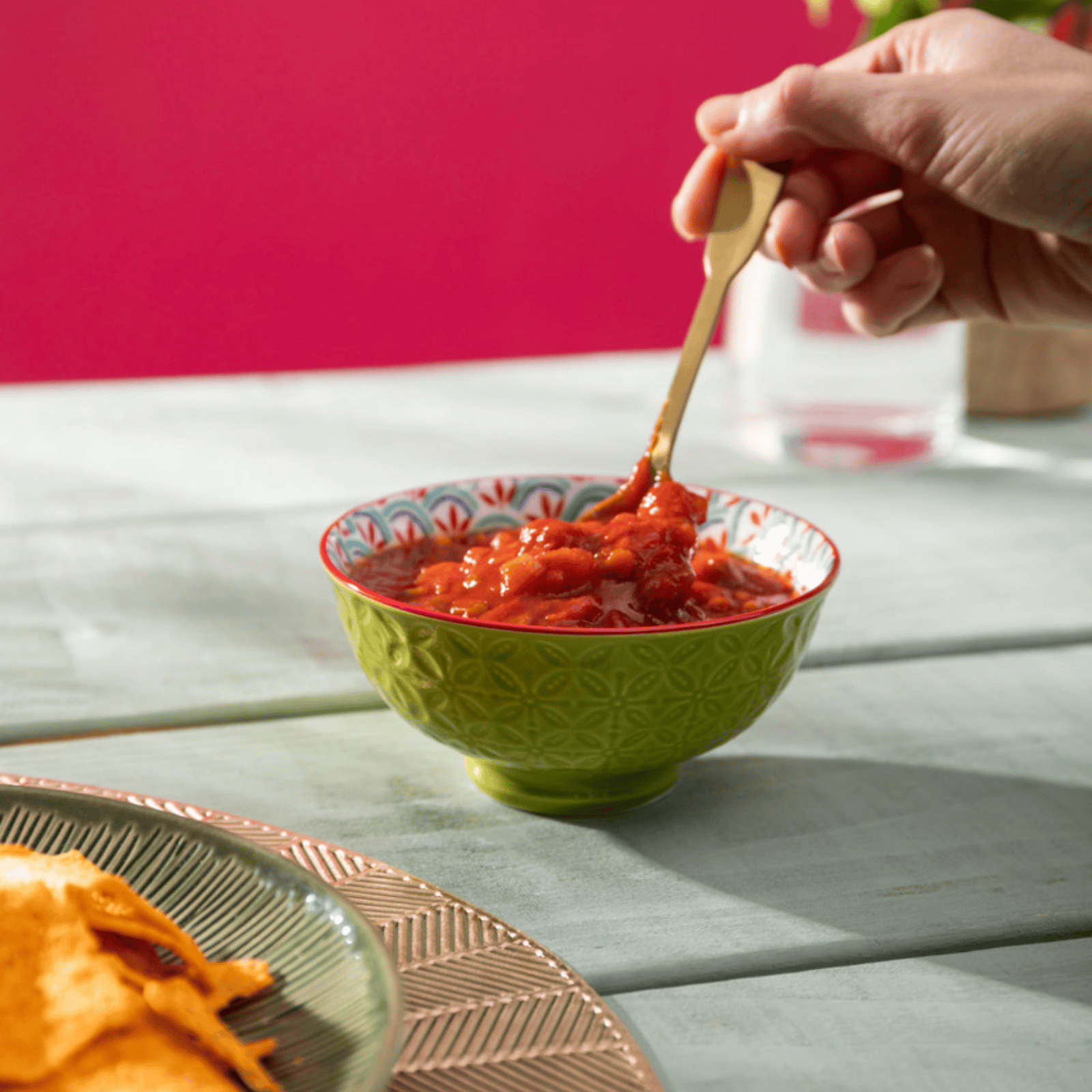 Bring style and colour to every snack or side with the Mikasa Green and Blue Geometric Stoneware Nibble Bowl. Expertly crafted with a 12cm design, it’s perfect for dips, sauces, nuts, olives, and small snacks. The bold two-toned green and blue geometric pattern and detailed textures add contemporary flair to any table. Microwave and dishwasher safe, this durable yet refined bowl combines practicality with style, making it a standout in your kitchenware collection.