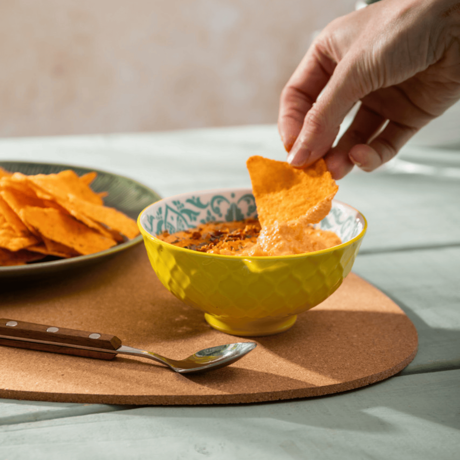Bring style and colour to every snack or side with the Mikasa Yellow and Blue Geometric Stoneware Nibble Bowl. Expertly crafted with a 12cm design, it’s perfect for dips, sauces, nuts, olives, and small snacks. The striking two-toned yellow and blue geometric pattern and detailed textures add contemporary flair to any table. Microwave and dishwasher safe, this durable yet refined bowl combines practicality with style, making it a standout in your kitchenware collection.