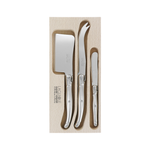 Verdier 3-Piece Cheese Knife Set, made in Laguiole, France by Andre Verdier. This set includes three essential tools for serving and enjoying cheese, each made of stainless steel blades and handles, complete with the iconic Laguiole Bee.