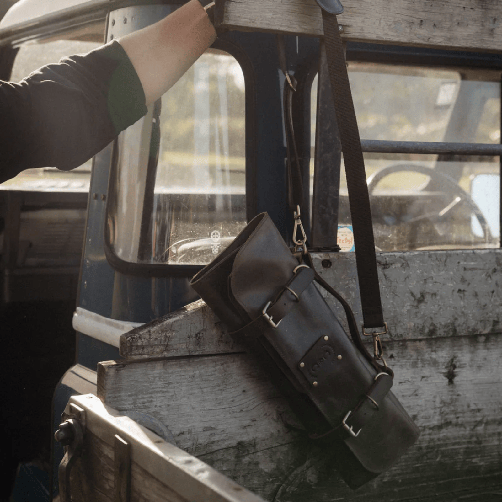 This is a Team favourite! The Knife roll securely holds up to six knives. The leather pockets are covered with a flap, and then they roll up, secured with two sturdy buckles.