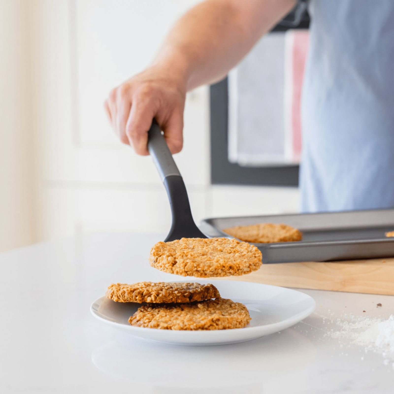 Elevate your everyday cooking with the KitchenAid Solid Turner, a durable, stylish 34cm kitchen utensil designed for effortless flipping and serving. Featuring an oversized solid head, it provides a stable surface for eggs, pancakes, burgers, and more. Made from heat-resistant nylon (up to 232°C/450°F), it's safe for all non-stick cookware. The ergonomic charcoal grey ABS handle offers comfort, balance, and a premium grip. The handle also features a debossed logo and a handy hanging loop, perfect for showcasing your kitchen utensils. Built for daily use with high-quality materials, it's also dishwasher safe for easy clean-up, making it a must-have kitchen essential.