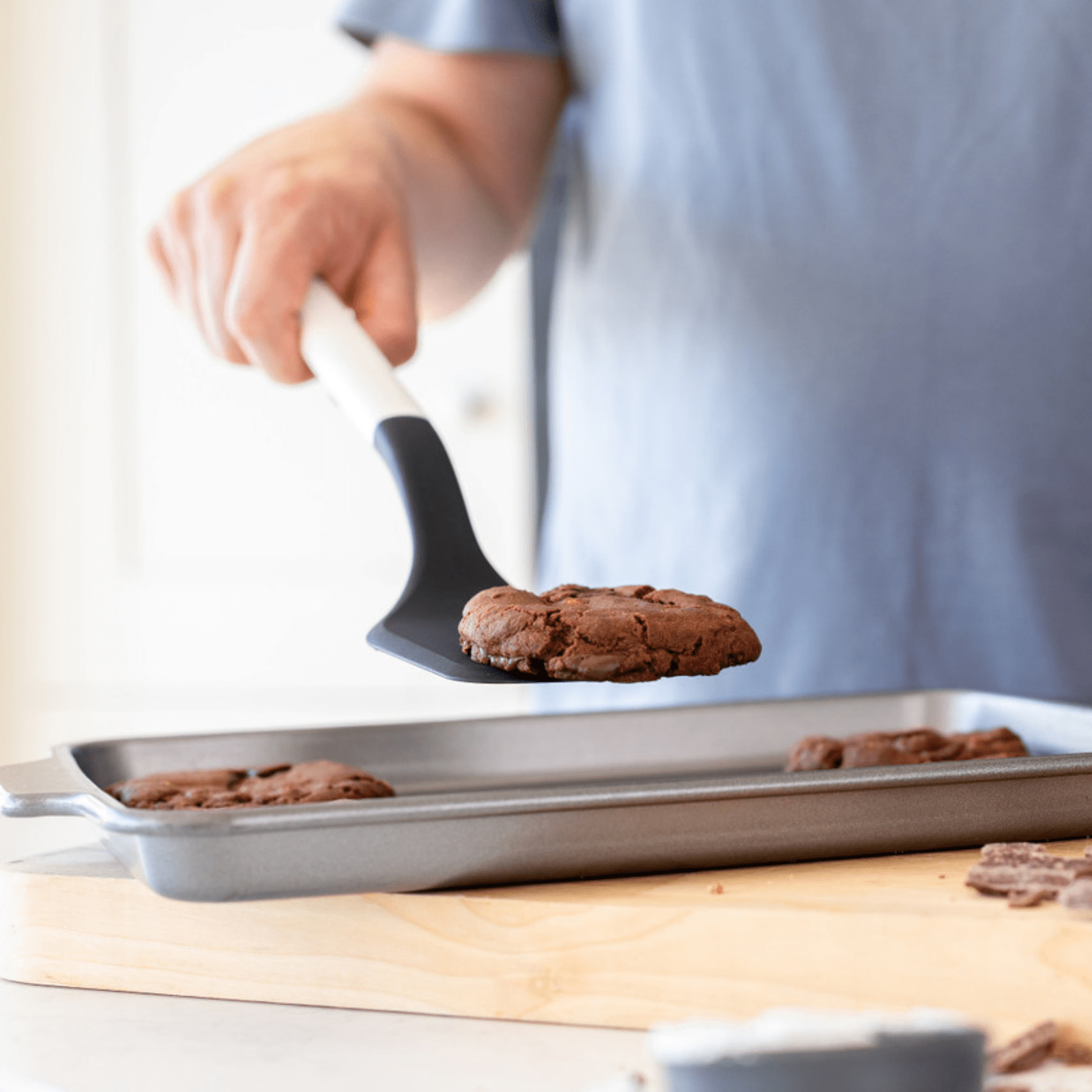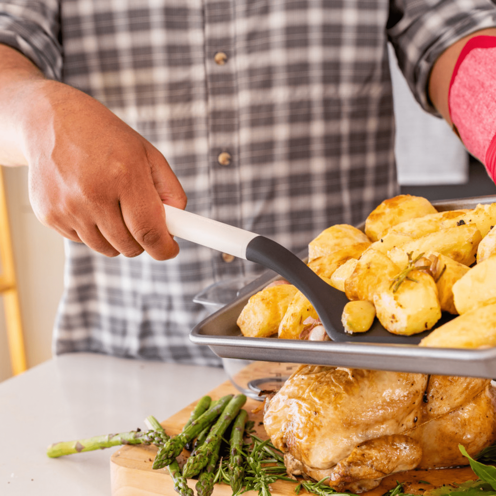 Elevate your everyday cooking with the KitchenAid Solid Turner, a durable, stylish 34cm kitchen utensil designed for effortless flipping and serving. Featuring an oversized solid head, it provides a stable surface for eggs, pancakes, burgers, and more. Made from heat-resistant nylon (up to 232°C/450°F), it's safe for all non-stick cookware. The ergonomic porcelain white ABS handle offers comfort, balance, and a premium grip. The handle also features a debossed logo and a handy hanging loop, perfect for showcasing your kitchen utensils. Built for daily use with high-quality materials, it's also dishwasher safe for easy clean-up, making it a must-have kitchen essential.