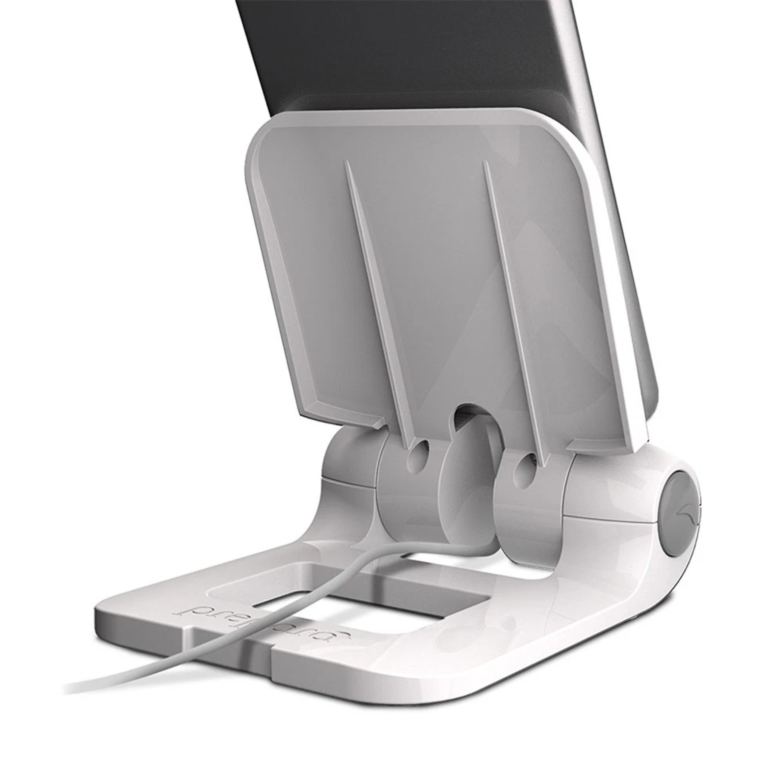 - Charging cable channel allows you to plug in your phone while using the stand.