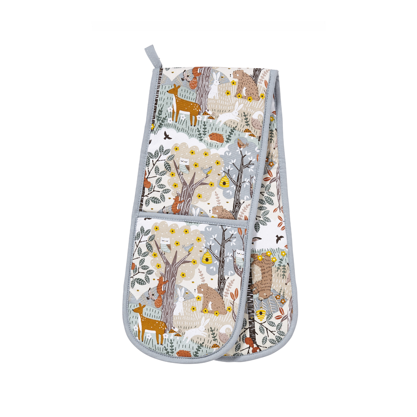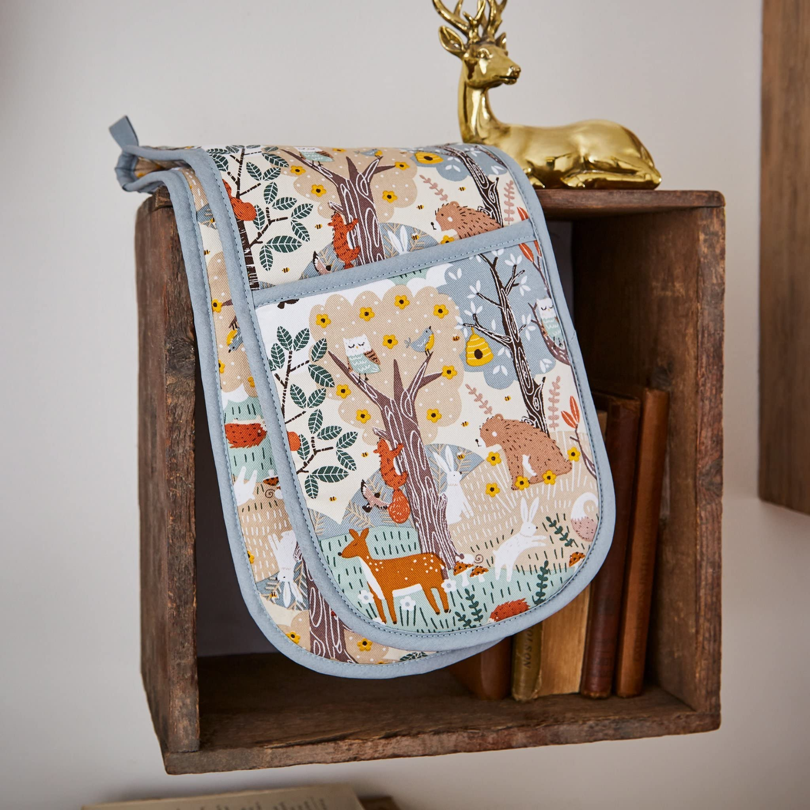 The popular woodland theme features cool tones of blue and green. These are subtly contrasted by warming browns and oranges to give a sense of seasonal change within the kitchen.