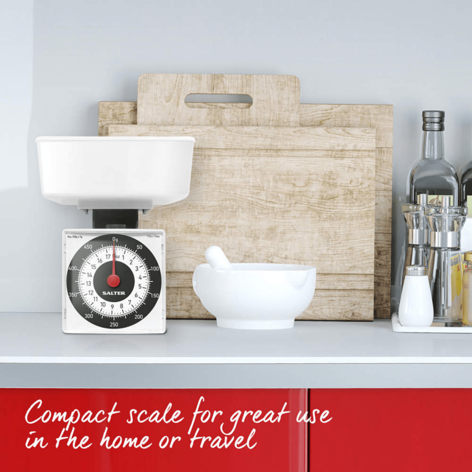 • Practical yet brilliantly compact, the Dietary Mechanical Kitchen Scale from Salter is perfect to use for travelling or in your bag.